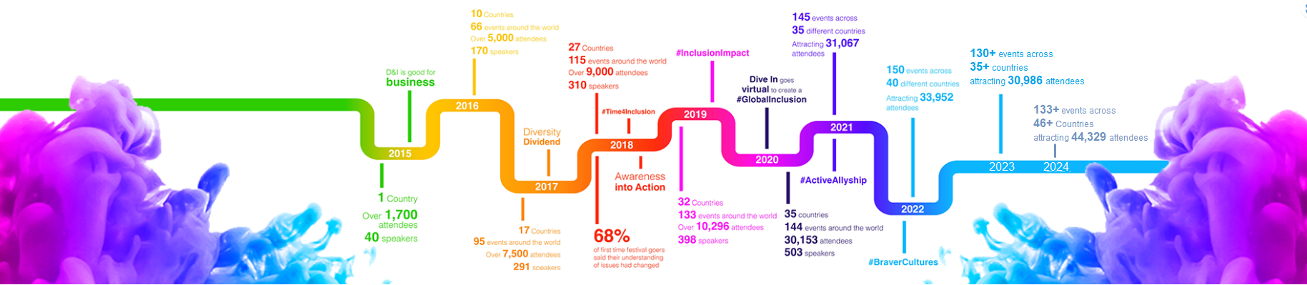 Dive In is a year-round proponent of diversity, equity and inclusion, offering guidance and tools that culminate in an annual three-day festival hosted in countries across the world, every September.